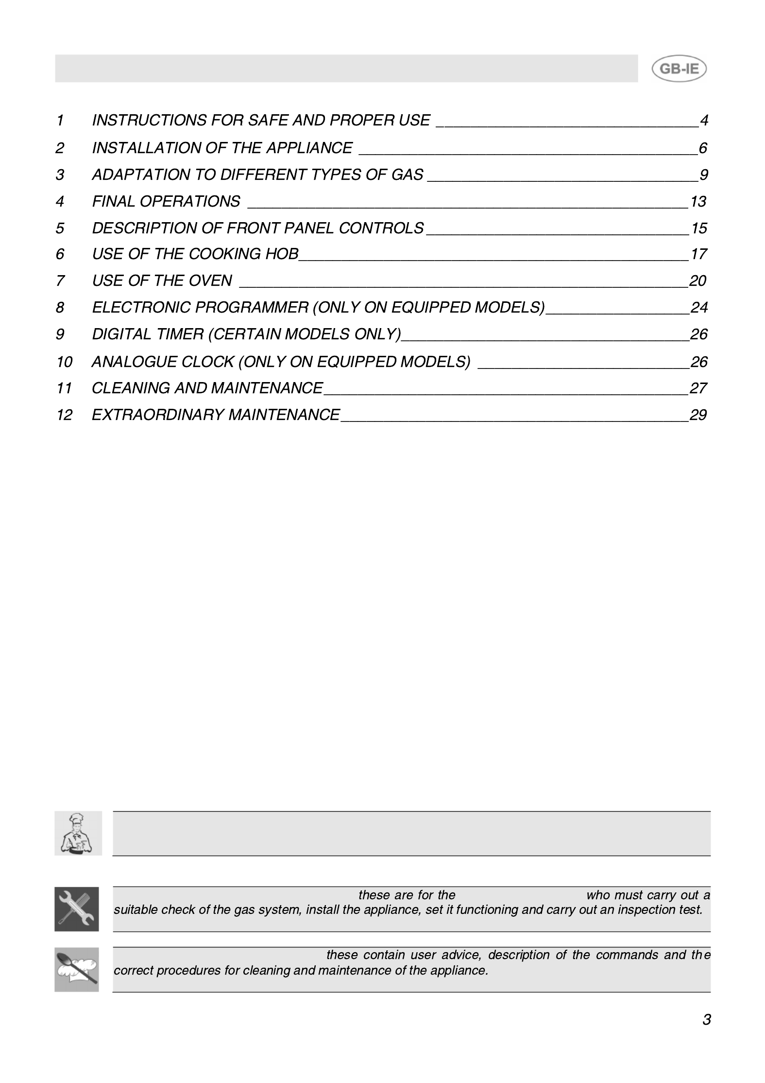 INSTRUCTIONS FOR THE INSTALLER