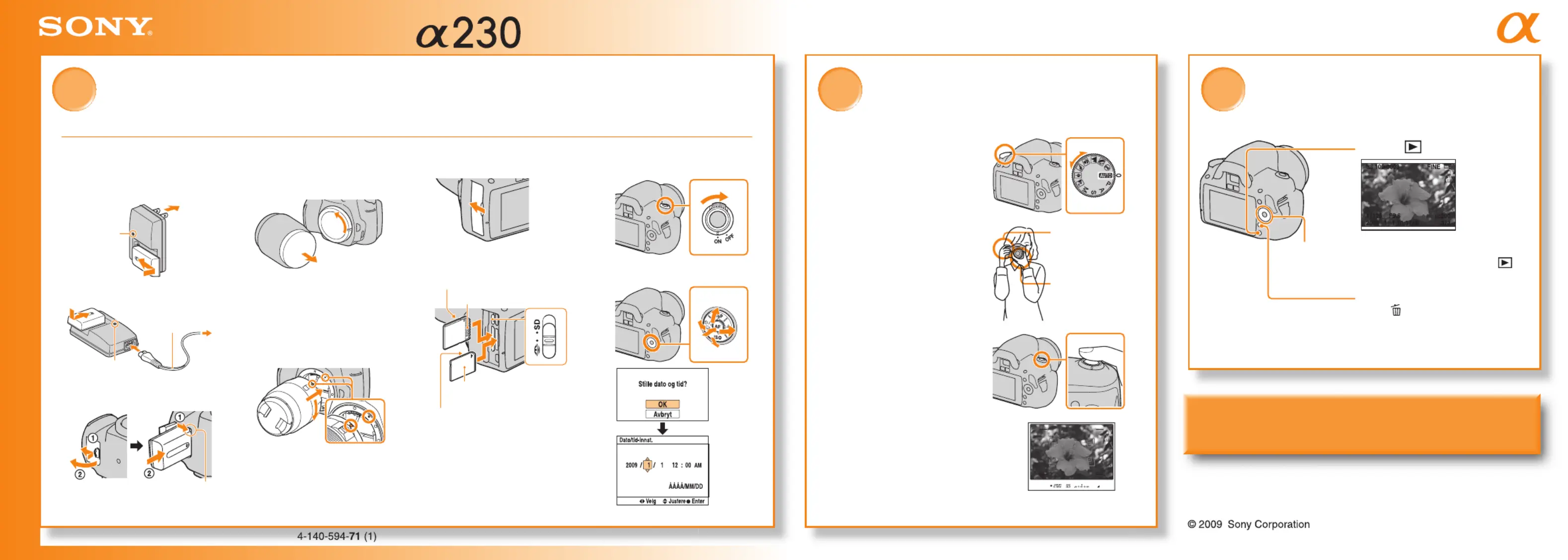 Her er Sony DSLR-A230 (Kameraer og videokameraer) brugervejledning. 1 sider på sprog med en vægt på 369,529.0 Mb. Hvis du ikke kan finde svar på dit problem Spørg vores community.