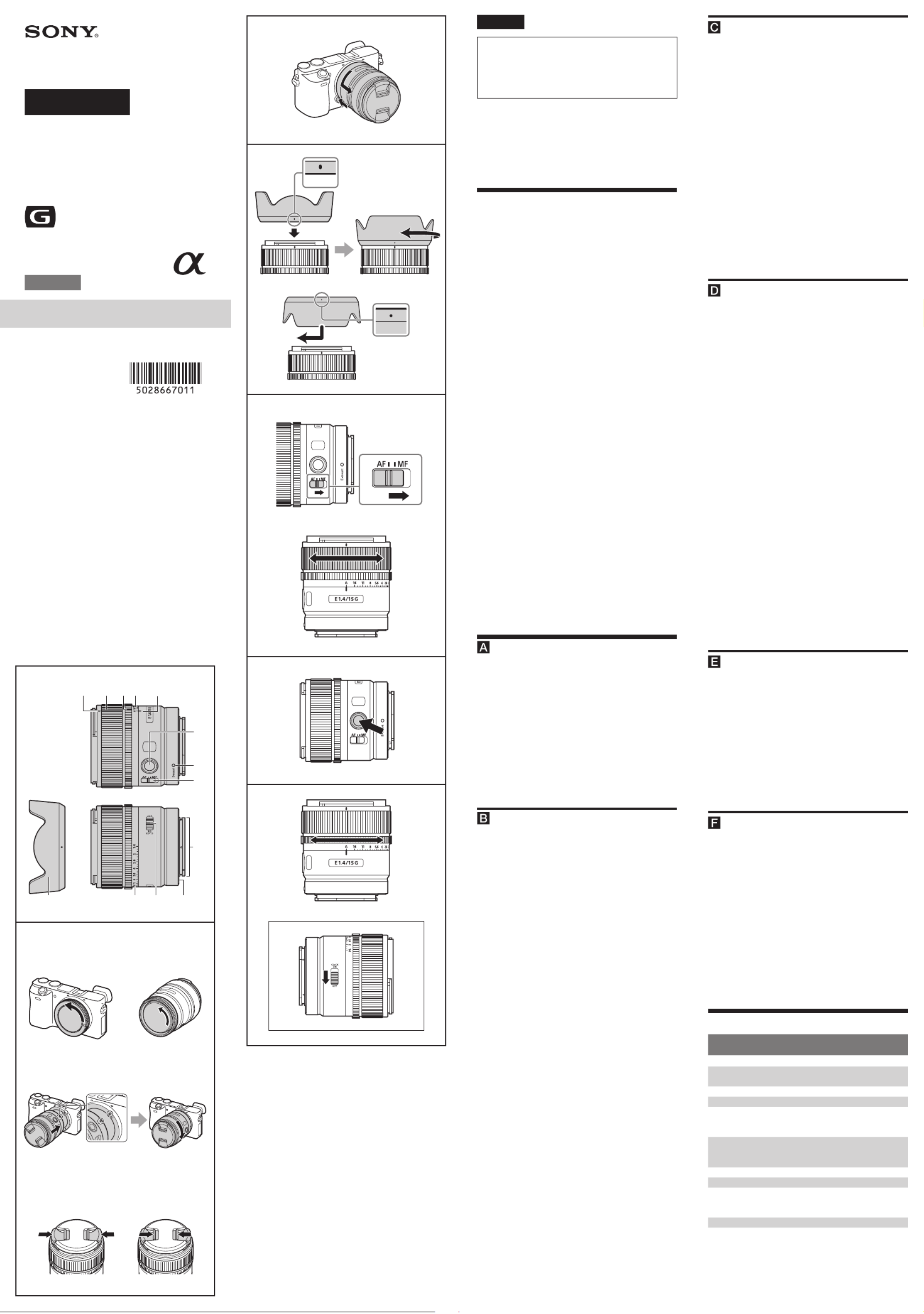 Sony E 15mm SEL15F14G Brugsanvisning