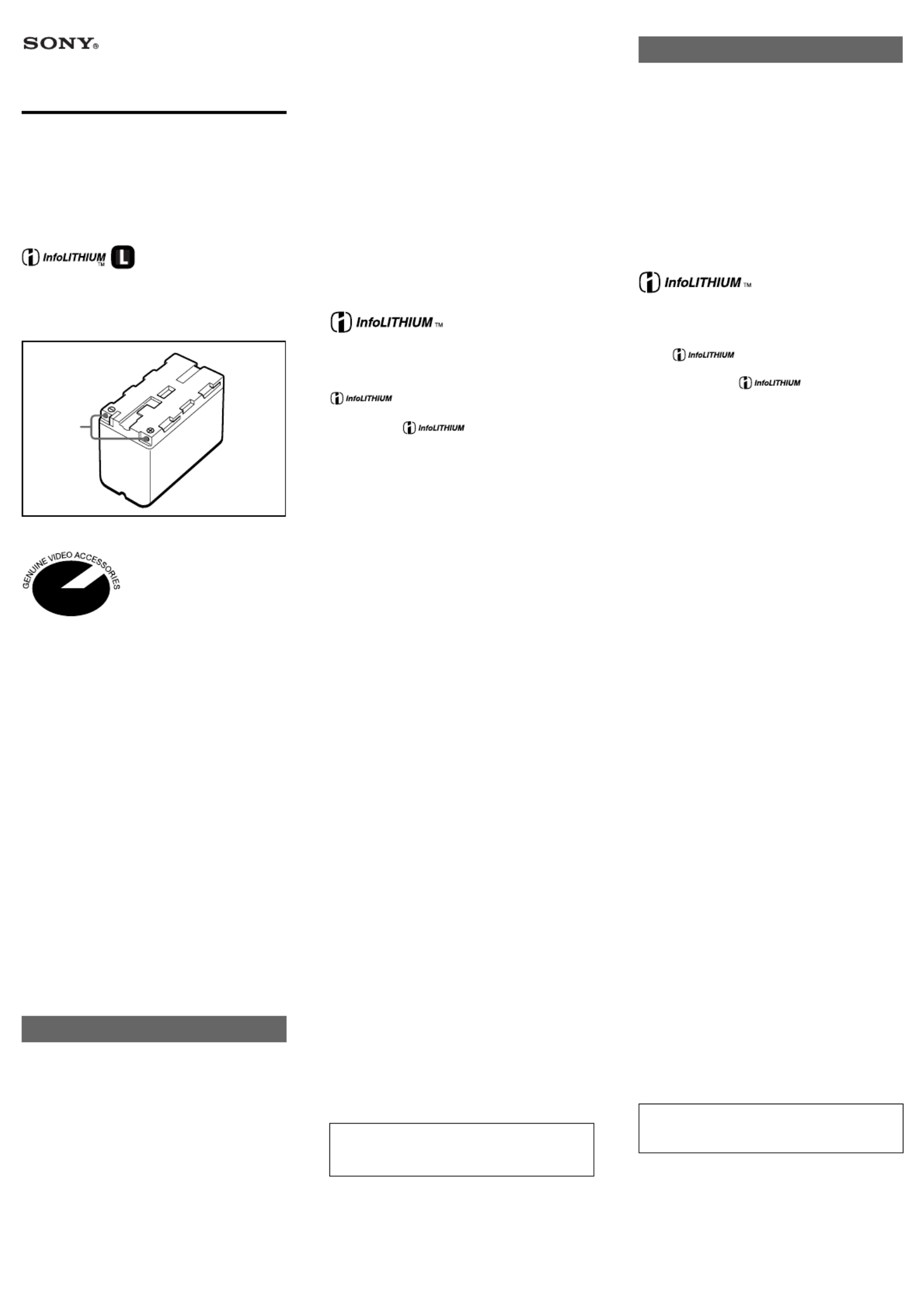 “InfoLITHIUM” is a trademark of Sony Corporation.