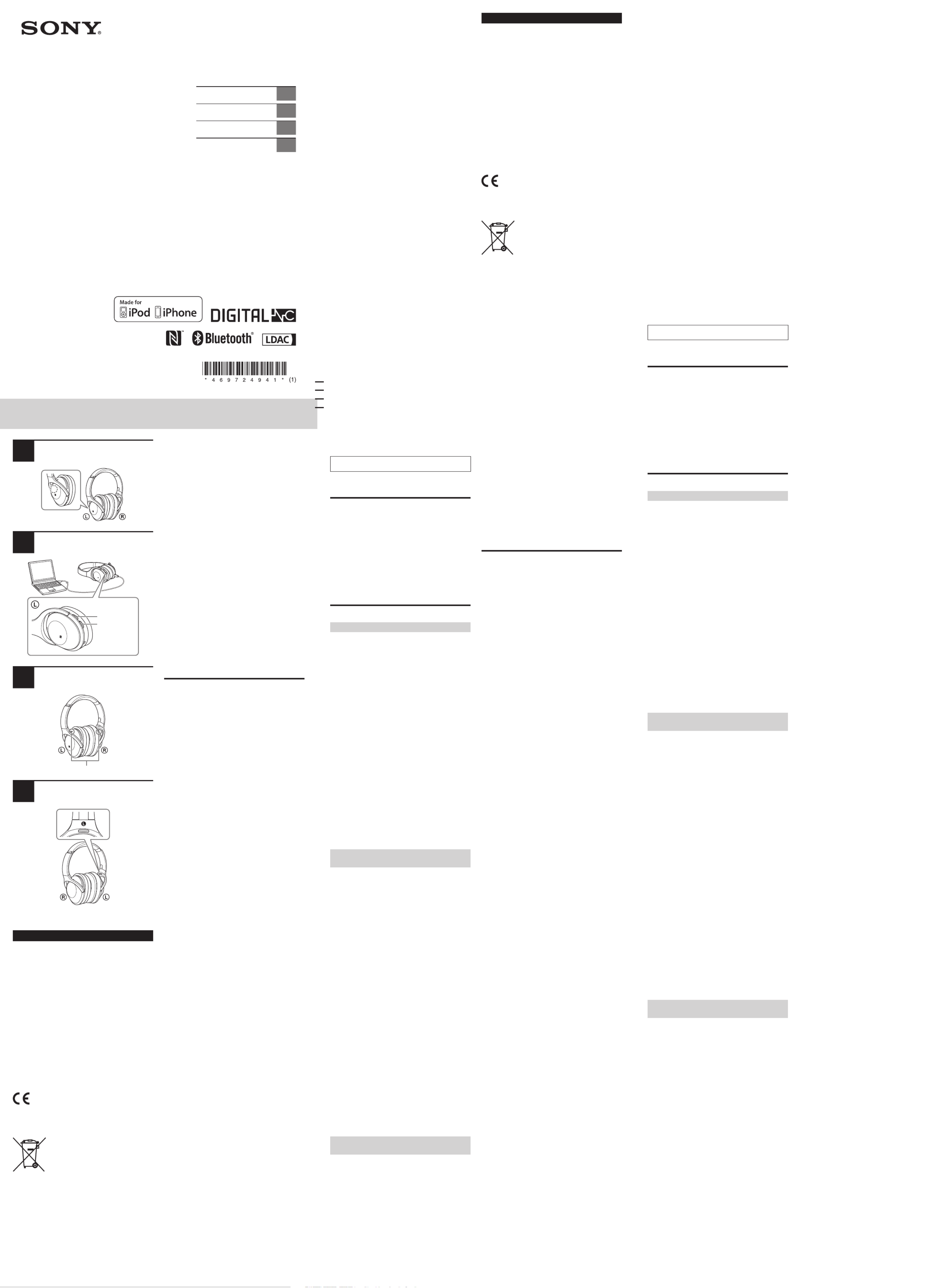 Sony WH-1000XM2 Brugsanvisning