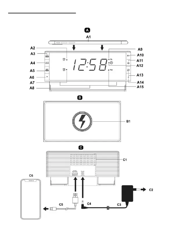 LED Radiowecker mit drahtloser Ladefunktion, Stimmungslicht und USB-
