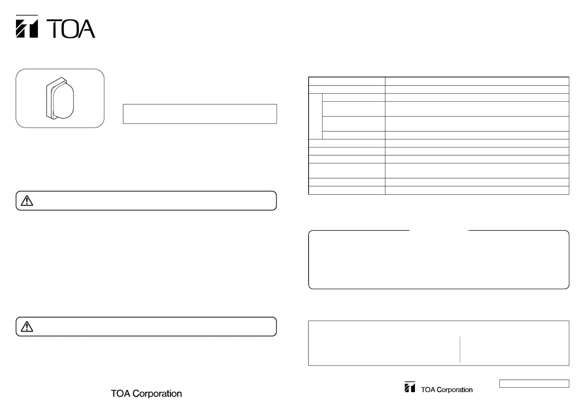 • Leave the installation of the unit to your TOA dealer because the installation requires expert