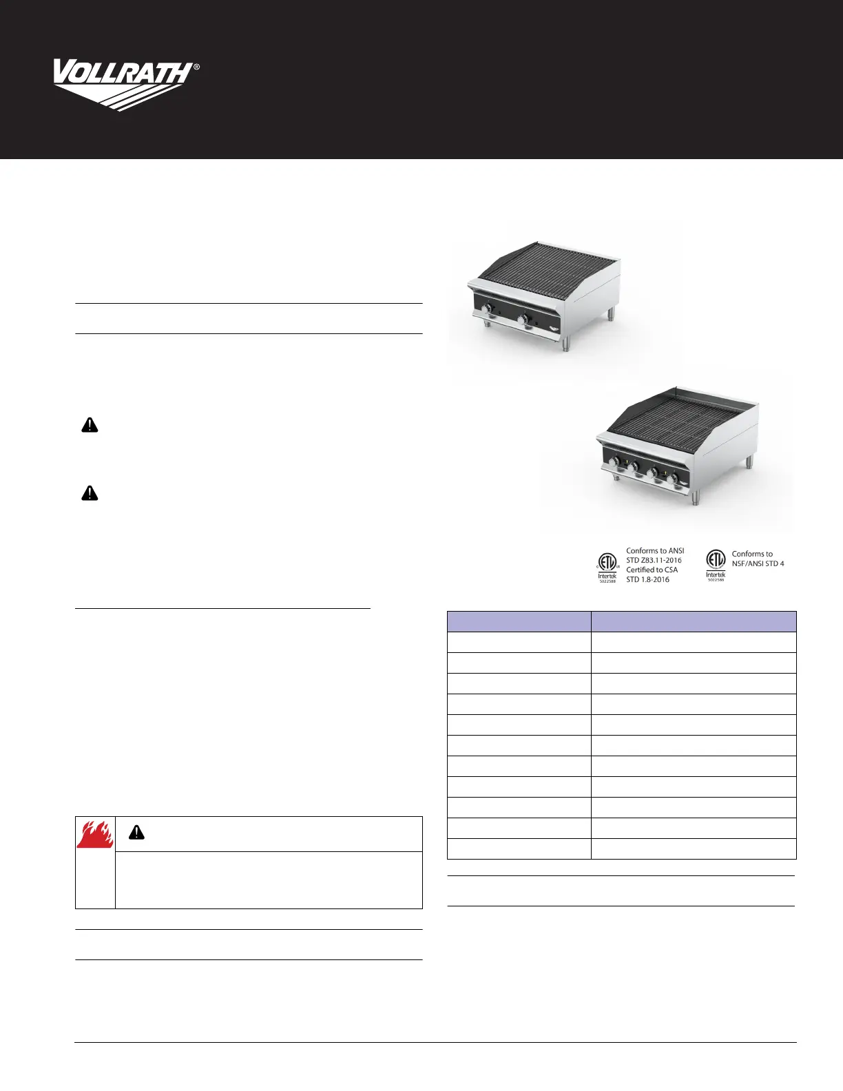 Thank you for purchasing this Vollrath equipment. Before operating the
