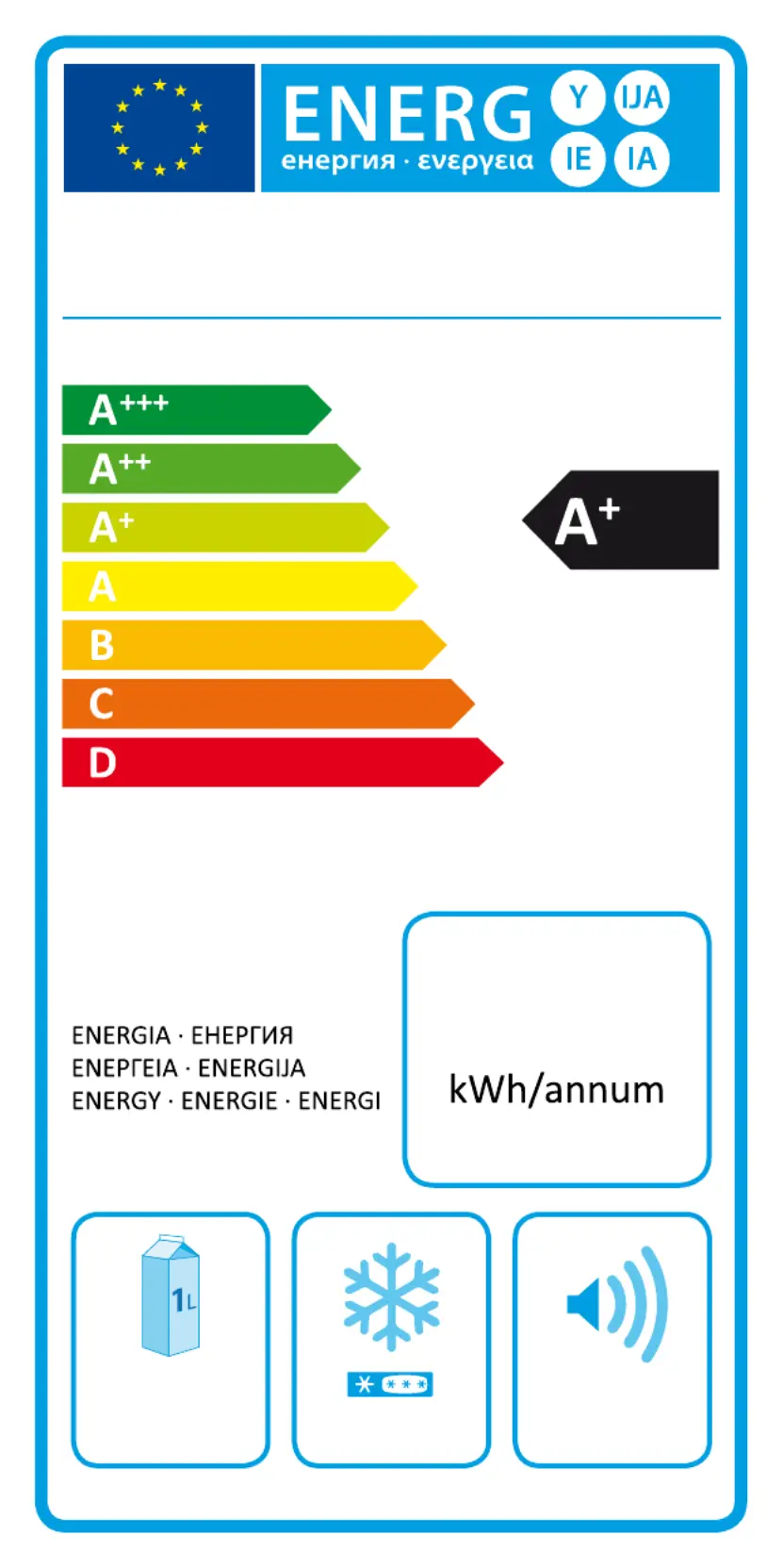 | Energieffektivitetsskala: | A+++ til D |