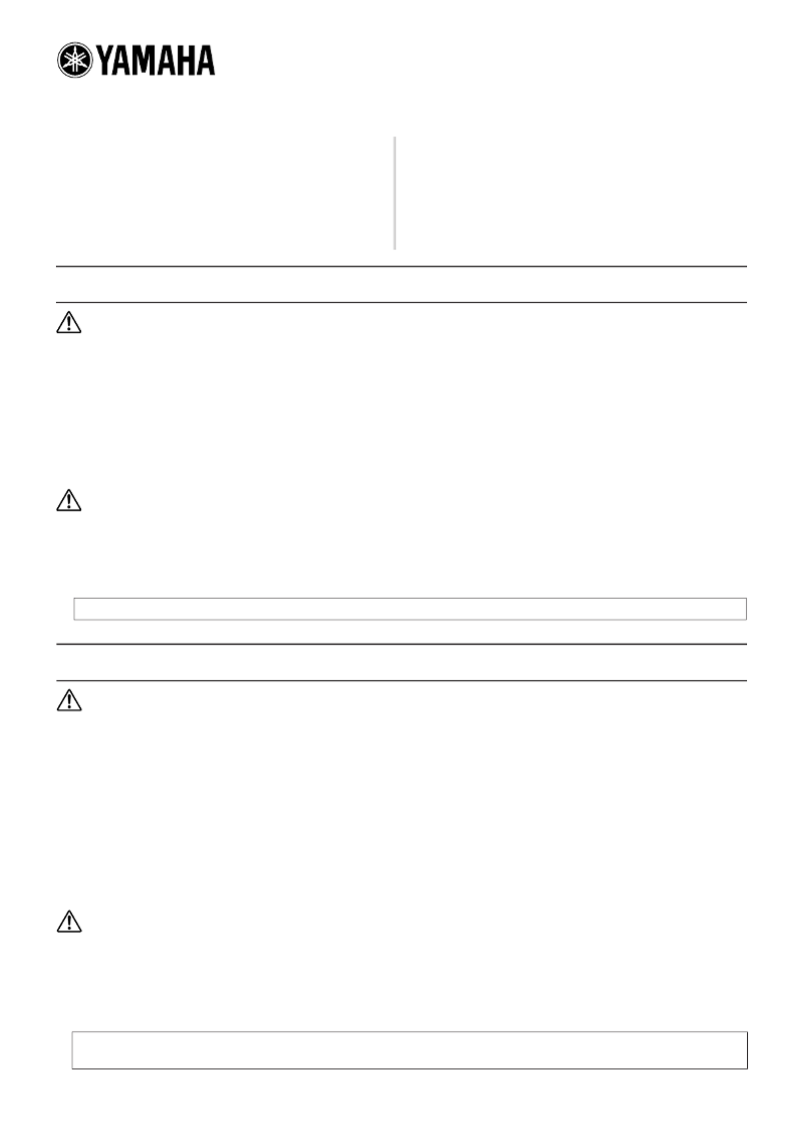 Yamaha n’assume aucune responsabilité pour des pertes de données, dégâts aux équipements ou blessures, résultant