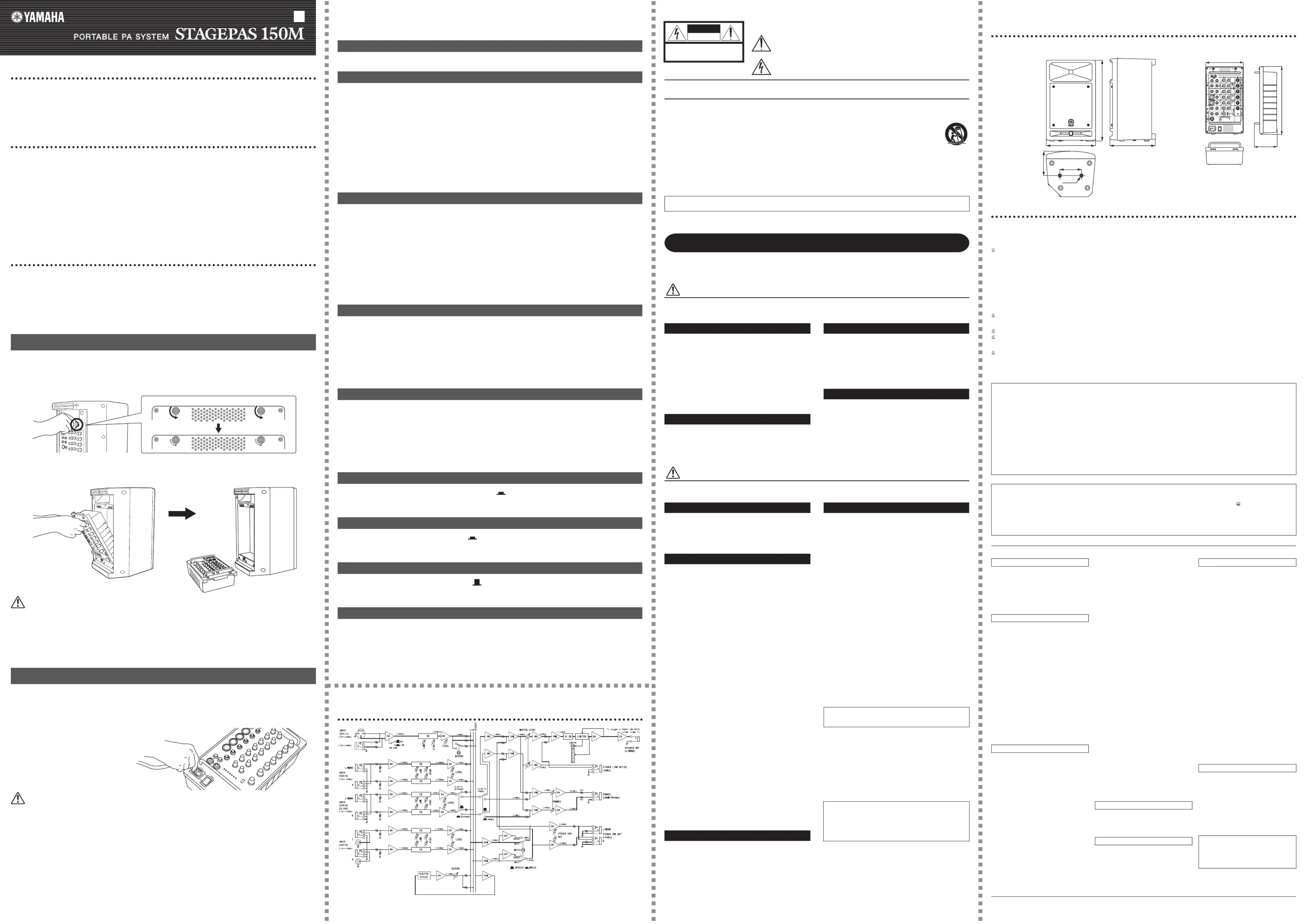 Thank you for your purchase of the Yamaha PORTABLE PA SYSTEM STAGEPAS 150M. The STAGEPAS 150M