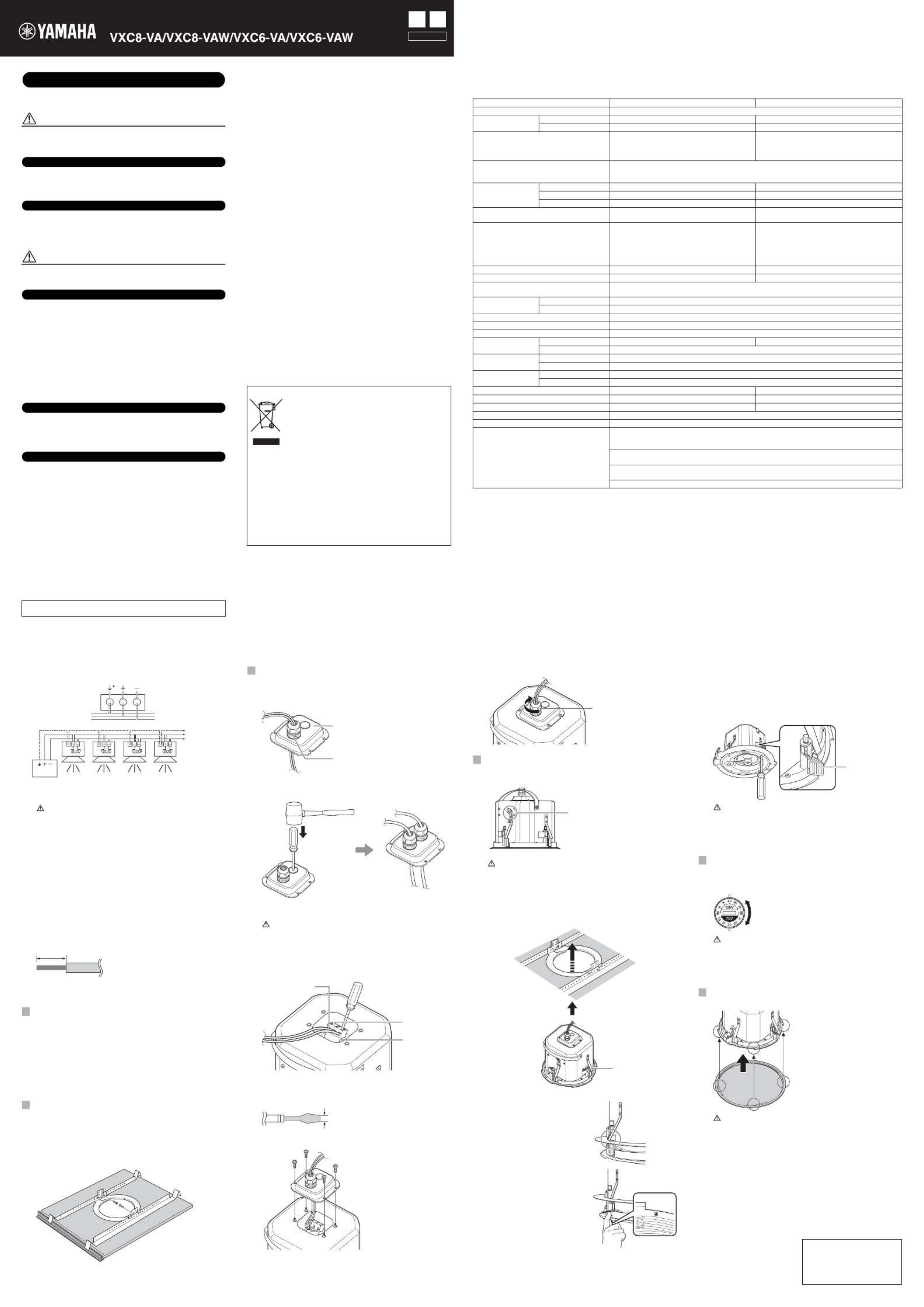 Her er Yamaha VXC8-VAW (Højttaler) brugervejledning. 1 sider på sprog Engelsk med en vægt på 0.3 Mb. Hvis du ikke kan finde svar på dit problem Spørg vores community.