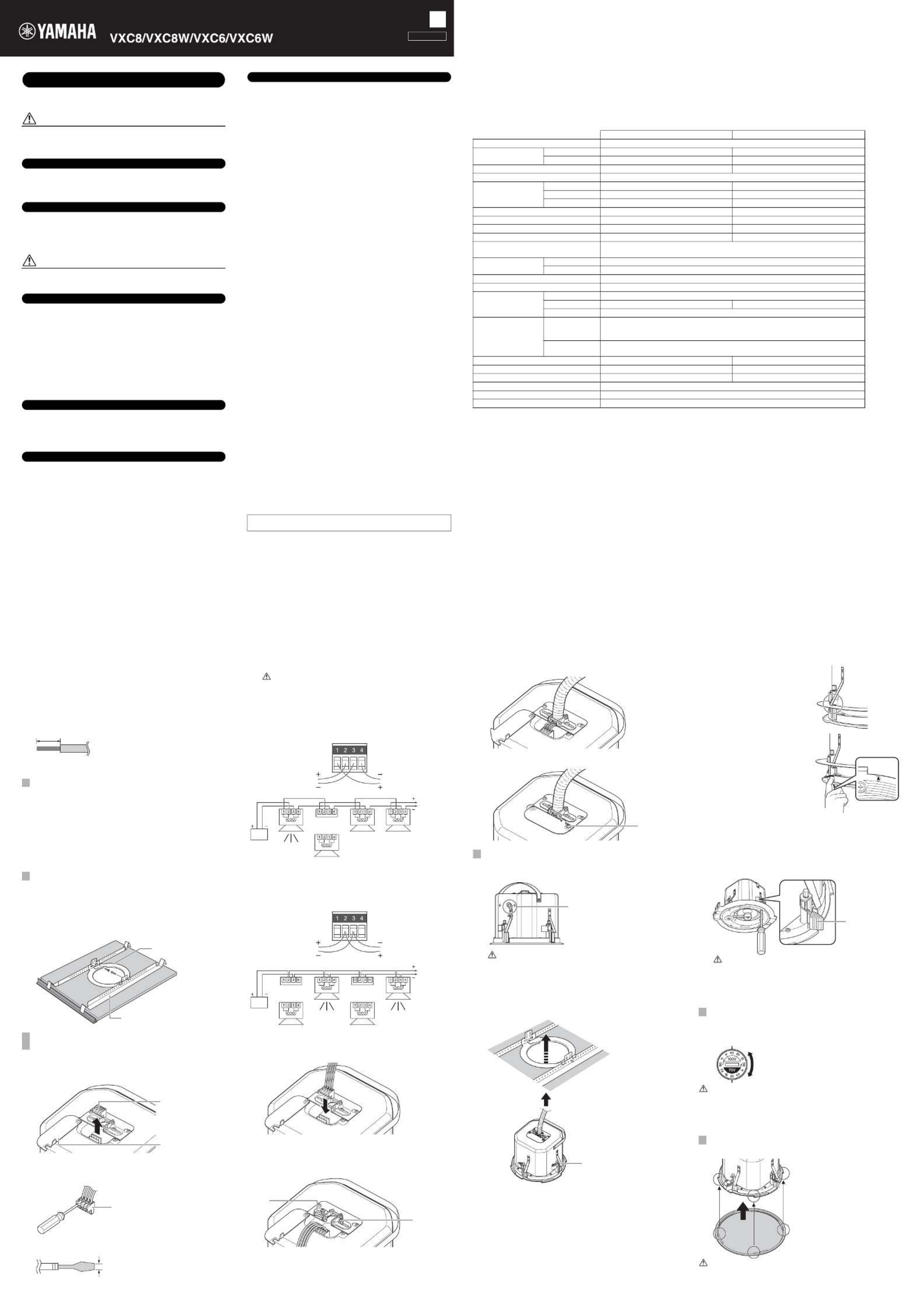 Her er Yamaha VXC8W (Højttaler) brugervejledning. 2 sider på sprog Engelsk med en vægt på 0.7 Mb. Hvis du ikke kan finde svar på dit problem Spørg vores community.